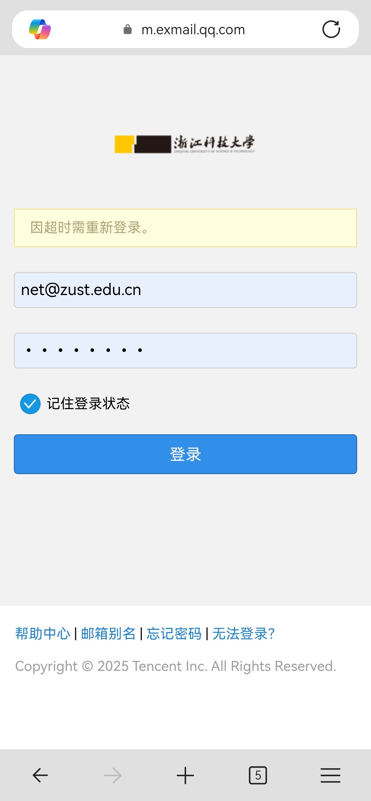 腾讯企业邮箱暂不支持手机版网页登录,若出现以下情况,请切换浏览器到电脑桌面版登录。